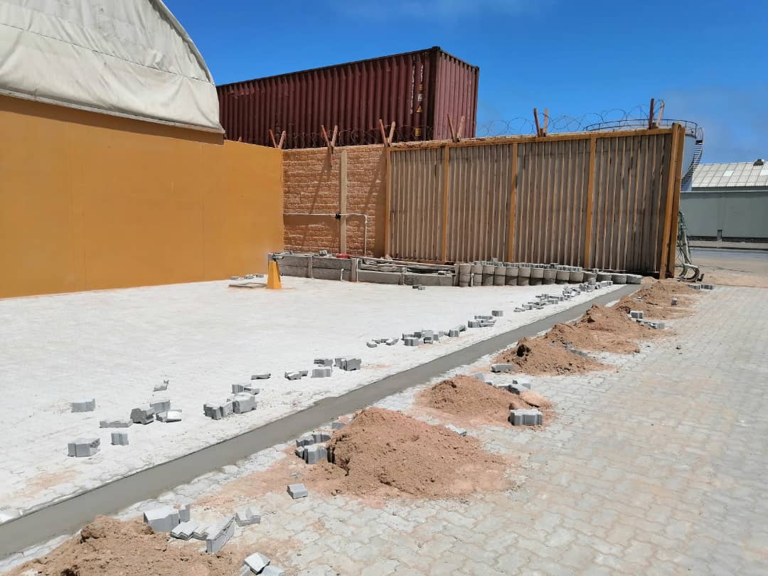 Yard Interlocking – Transworld Cargo, Von Braun Street: Installation of durable interlock paving to support heavy equipment and optimize yard operations.